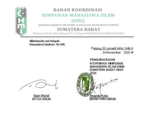 Padang,– starbpknews.id – 25, November 2025 Badan Koordinasi Himpunan Mahasiswa Islam (Badko HMI) Sumatera Barat menyurati sejumlah pihak terkait dugaan anggota DPD RI perwakilan Sumatera Barat, Cerint Iralloza Tasya, yang tengah menjalani program Ko-Asisten (KOAS). Surat ini merupakan tindak lanjut dari polemik yang berkembang di publik.