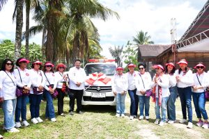BAKSOS KELUARGA BESAR SABAM SIRAIT-SONDANG SIDABUTAR DAN SOCIAL GRACIA COMMUNITY, BUPATI SAMOSIR TERIMA BANTUAN MOBIL AMBULANCE
