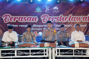 Banyuwangi – Kapolresta Banyuwangi Kombes Pol Rama Samtama Putra,SI.K., M. Si,, M.H bersama sejumlah Pejabat Utama (PJU) Polresta Banyuwangi dan Kapolsek Muncar menghadiri Berasan Bersholawat di Pondok Pesantren Mambaul Ulum Muncar Banyuwangi., Selasa(22/10/2024)