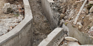 Rangkaian Besi yang menjadi tulang utama drainase terlihat sedikit pendek (diduga penurunan kwantitas), sehingga Selimut Beton yang menutupi Besi terlihat kebesaran (diduga Penurunan Kwalitas).