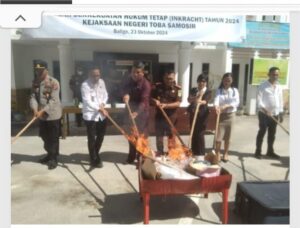 Provinsi Sumutt -arbpk.news.idKejaksaan Negeri (Kejari) Kabupaten Toba mengelar Pemusnahan Barang Bukti (BARBUT) sejumlah kasus tindak pidana umum yang telah berkekuatan hukum tetap (Inkract) dihalaman Kantor Kejari Toba Samosir (23-,Oktober-2024).