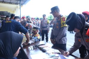 Lanjut, disamping pengecekan perlengkapan dan pemberian kebutuhan Personel Pengamanan TPS, Kapolres juga mengingatkan kepada seluruh anggota yang terlibat agar melakukan pengamanan di titik lokasi Pengamanan TPS yang sudah ditentukan.