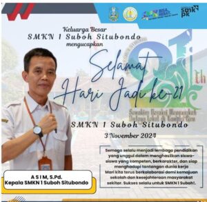 Bulan ini bertepatan dengan tanggal 03 November 2024 SMKN 1 Situbondo mengadakan event perayaan hari jadi sekolah ke -21.puncaknya tercermin di perayaan Dies Natalis yang berlangsung 06 November 2024 kemarin di halaman SMKN 1 suboh.