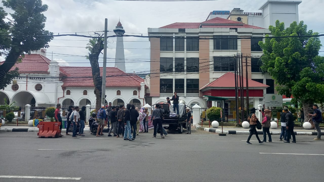 Massa Aksi yang berjumlah puluhan orang menyampaikan aspirasi didepan PN Makassar dan meminta kepada ketua pengadilan untuk menemui Massa aksi yang di pimpin oleh Agus dan Riswan sebagai jendral lapangan (Jenlab)