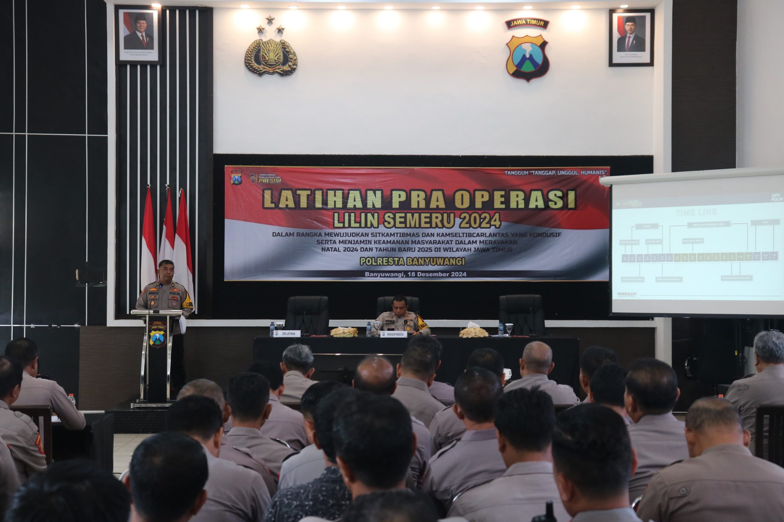 BANYUWANGI — Polresta Banyuwangi Polda Jawa Timur mempersiapkan operasi pengamanan bertajuk Operasi Lilin Semeru 2024 dengan menggelar Latihan Pra Operasi di Rupatama Banyuwangi, Rabu (18/12/2024)