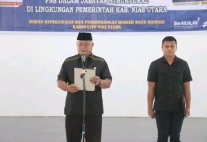 bupati Nias Utara dalam arahannya menyampaikan bahwa pelantikan pejabat hari ini merupakan pejabat level middle manajemen yang tugasnya membantu dan memberikan saran kepada pimpinan pada organisasi perangkat daerah yang ditempatkan, sembari menegaskan agar pejabat yang dilantik harus bekerja sesuai dengan aturan yang berlaku.
