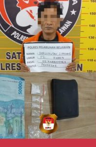 Kapolres Pelabuhan Belawan, AKBP Janton Silaban, SH., SIK., MKP., melalui Kasat Narkoba AKP Ismail Pane, SH., MH., menjelaskan bahwa penggerebekan dilakukan setelah mendapatkan informasi dari masyarakat terkait aktivitas mencurigakan di lokasi tersebut. “Dari hasil penggerebekan, kami berhasil menangkap tiga pelaku, yaitu Parluhutan Sitohang (52) sebagai pengedar, serta Feri Sitohang (35) dan Edi Marta (53) sebagai pengguna narkoba,” ungkap AKP Ismail Pane.