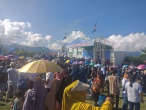 Puluhan ribu massa pendukung memadati lapangan hingga ke jalan utama ibu kota Bolaang Mongondow Timur tersebut.